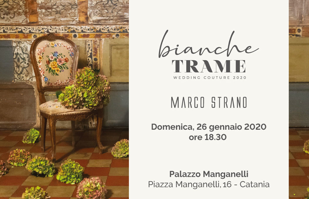 Marco Strano presenta la nuova collezione wedding couture e alta moda 2020 “Bianche trame”, domenica 26 gennaio 2018 ore 18.30 Palazzo Manganelli - Catania.